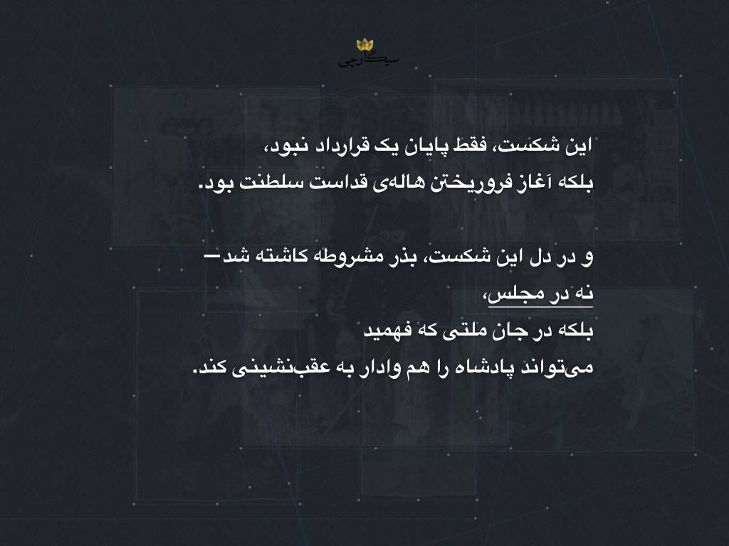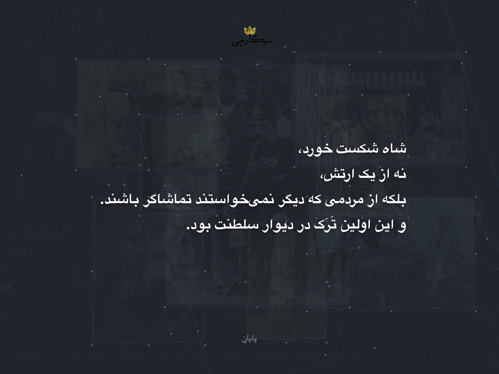 این فصل از سیگارچی، آینهایست از بیداری ملت و آغاز پایان سلطنت.