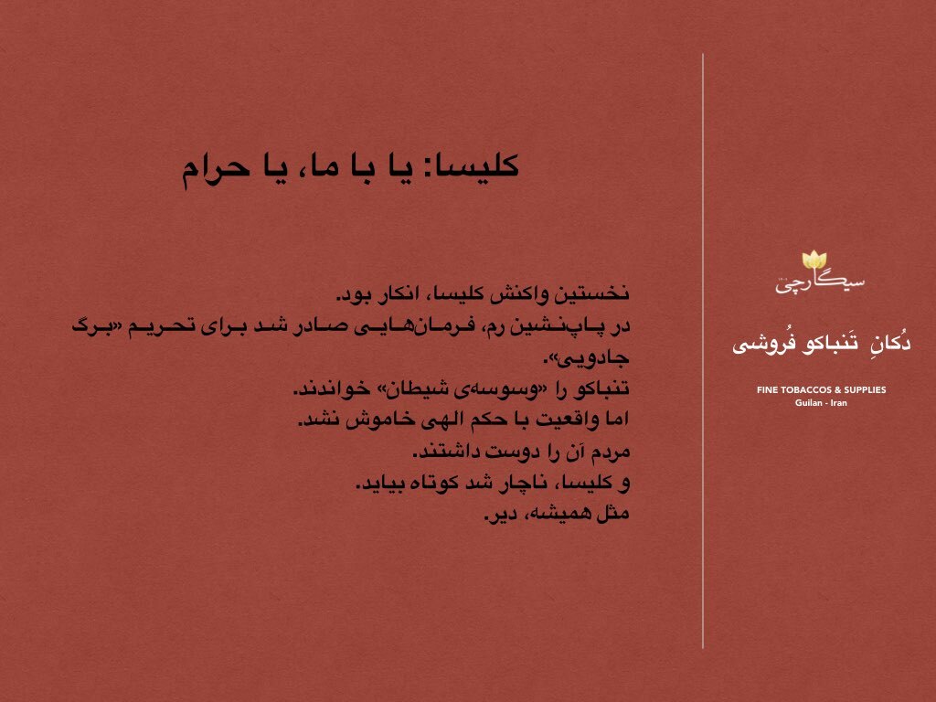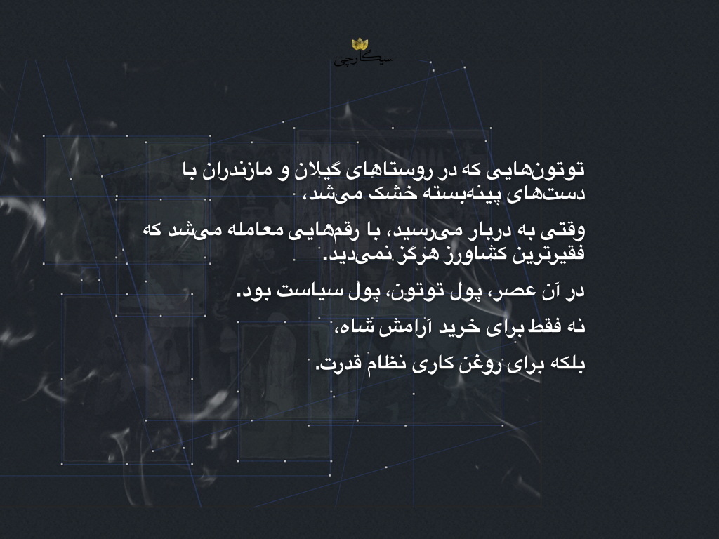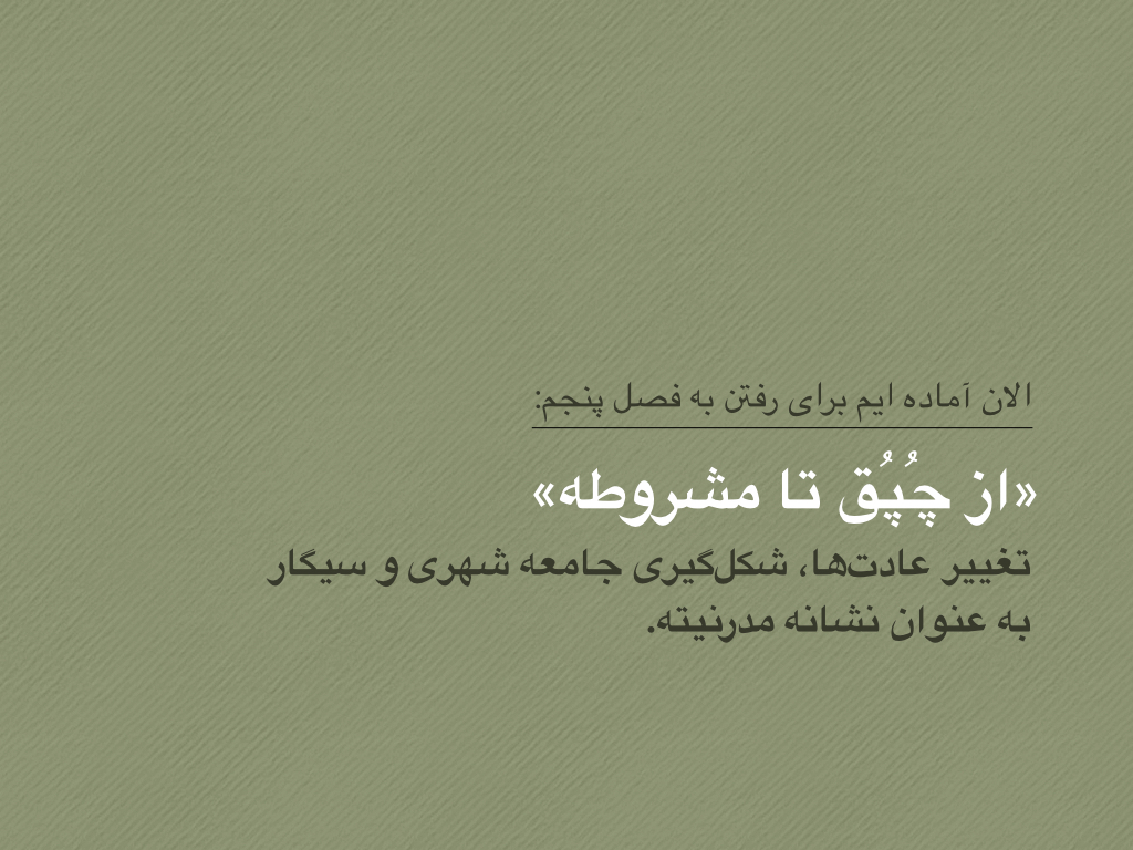 این فصل به ریشههای تاریخی و فرهنگی ورود توتون به ایران میپردازد؛